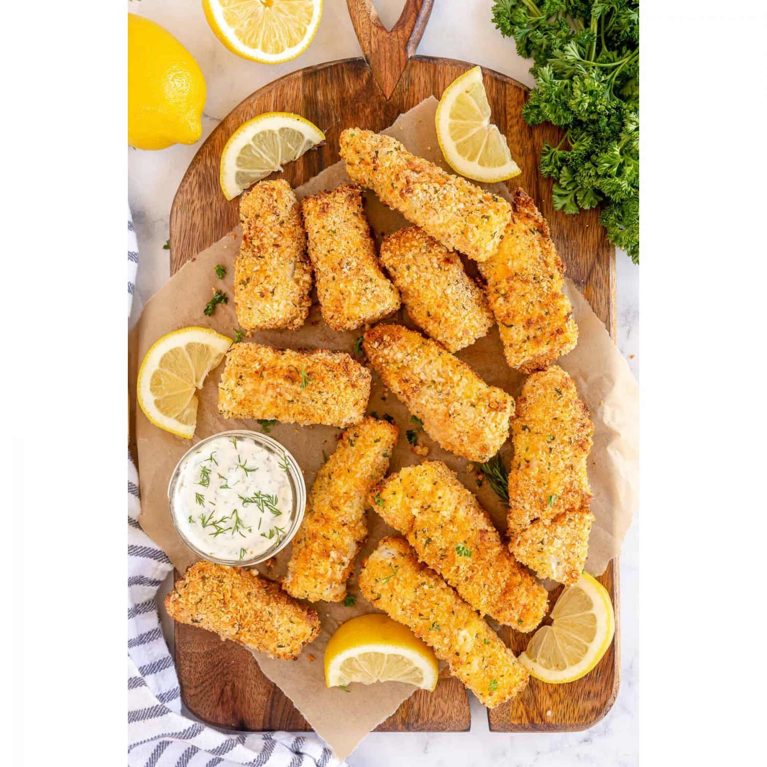 Tender fish fillets coated in a crunchy crust, a delightful fusion of sea and crunch.