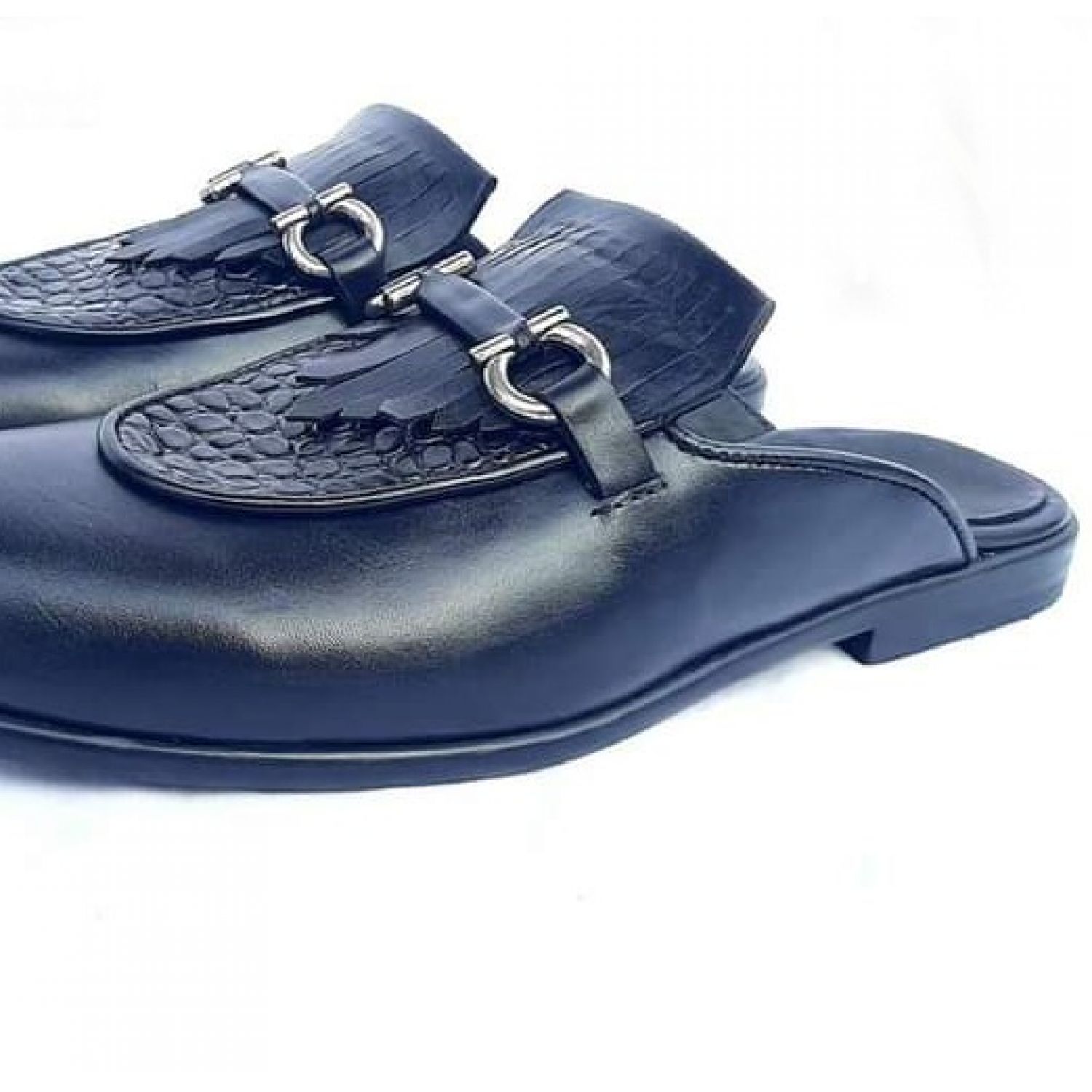 Open men's shoe in black leather.